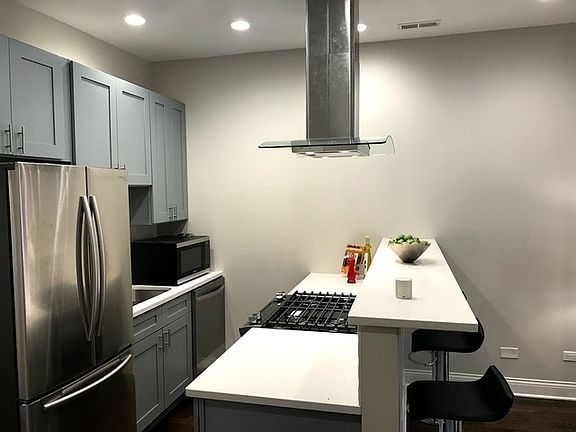 Gut rehabbed (2018) condo quality 3-bed / 2-bath in Hot Ukrainian Village! Modern building, second floor, bright, clean and very spacious! In-unit LAUNDRY (washer/dryer), central HV/AC, high-end stainless steel appliances, granite counter tops, hardwood floors throughout, dishwasher. En-suite primary bedroom with walk-in closet. GARAGE PARKING AVAILABLE for additional fee. The open floor plan showcases a beautiful designated living and dining area, plus a modern eat-in kitchen with high-end stainless steel appliances (refrigerator, stove, dishwasher, microwave) and ample countertops with hardwood floors. All the bedrooms are queen-sized with plenty of closet space. The primary bedroom has its own en-suite bath and walk-in closet. Shared grass backyard for entertaining. Situated near Western Avenue, this property is close to the endless shopping on Chicago Avenue. Mariano's is a few short blocks away. This lovely neighborhood has many restaurants (Bacci Pizza, Dark Matter Coffee, Kai Zan, Empty Bottle), boutiques and bars to explore! The street is quiet, but there are many fun places to go around it. Direct bus 66 to Michigan Avenue, and driving takes 20 minutes to downtown. 12-month lease only. Owner pays water, sewer, landscaping, snow removal, trash and recycling. Tenant pays gas, electric, internet. $400 per person move-in fee. $150 additional per month for garage parking