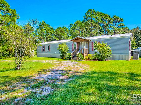 This is your chance to own one of the largest lots in Wood Glen!! This 2020 (like new condition - never been rented, only lightly lived in) 3 bedroom 2 bath sits on almost half an acre leaving plenty of room for all of your toys including boats, carts etc.. Circular drive and the property is set back which gives you privacy. Conveniently located within one mile of the new high school, middle school and performing arts center. Concrete trails for walking or cycling within close proximity. Public boat launch within 3 miles. New metal roof 2021, new grinder pump 2022 (still under warranty), sheet rock walls, beamed ceilings, crown molding, and vinyl flooring throughout. Covered front porch and a wonderful large covered back porch with an enclosed fence for your pet. There is an incredible community pool located towards the back of the neighborhood (call for directions it is different from the Lauder Place pool). Live in one of the nicest locations in Orange Beach for a price that is affordable to almost everyone!