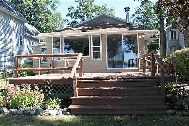 PRICE REDUCE 10,000.00 Beautiful views from this prime location on Pleasant Lake. Only minutes from a 27 hole public golf course and restaurant. The original cottage has 2 bed rooms on the main floor and the garage has been added on to and it has 2 (non-conforming ) bedroom above the garage. The closet is outside of the bedroom so that why its non-conforming. The addition needs to be finished and painted. A new railing MUST be installed going upstairs. No FHA financing on this one. Priced BELOW SEV>>>>>SELLER SAYS " MAKE ME AN OFFER !
