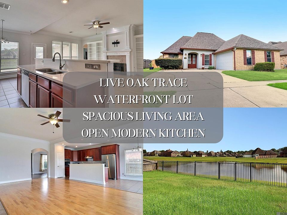 This beautiful 4 bed 2 bath waterfront lot home in Zachary is ready for it's new owner! From the entrance, you'll walk into the spacious living open living area with windows along the back ensuring you get great natural sunlight and views of the water! The living area also features a beautiful fireplace with built-in shelves. This area is great for entertaining! Connected is the fully equipped kitchen featuring a gas cooktop, quartz countertops, build in oven and a breakfast bar! This home also features a large primary suite with a spacious walk-in closet! Both bathrooms feature dual sinks and quartz countertops. Enjoy the covered back patio with gorgeous views of the pond. This home also has tons of storage. Built in shelving in the garage, an extra storage area in the garage that could double as an office, plus a spacious outdoor shed! To boot, this home is flood X so it does not require flood insurance and the roof is only 5 years old! Schedule your showing today!