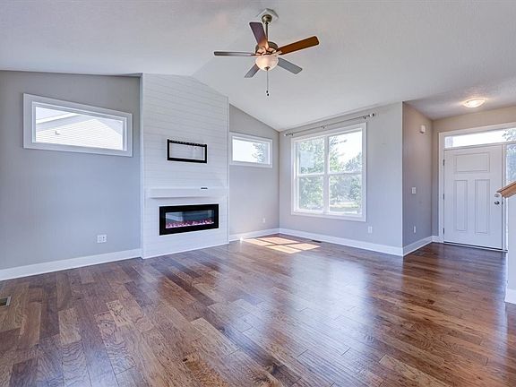 This is literally your NEW home! Stepping in the front door you’ll fall in love with the main living space with vaulted ceiling, huge windows and a beautiful electric fireplace. The adjoining Kitchen and Dining area boasts a 9’ ceiling, large island, white cabinets and quartz countertops. Enjoy every meal in your spacious dining area with access to the deck. A pantry, mud room and ½ bath complete the main level. Upstairs offers 2 large bedrooms that share a full bath, the laundry room and the primary suite with dual vanity ¾ bath and an expansive walk-in closet. The lower level of the home is plumbed for another bathroom, has an egress window and awaits your creative finishing touches. Enjoy time on your deck outside or make the short trip to nearby trails and/or Easter Lake. You’ll have plenty of space for all your recreational toys in your oversized two-car, attached garage! What’s missing??? YOU! Call today to schedule a showing.