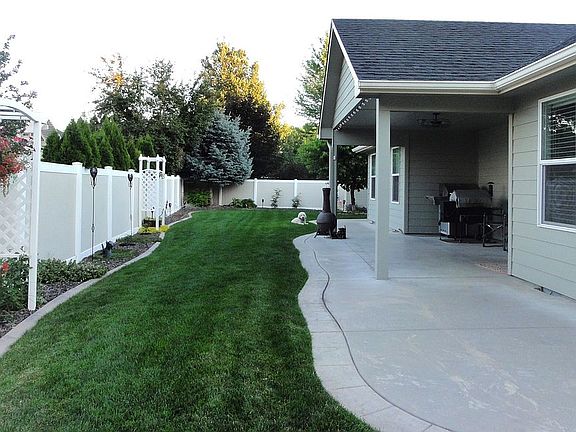 Beautiful 2 bedroom, 2 bath home in Meridian with a great room. Kitchen updated in 2019 with granite countertops and tile backsplash, new roof in 2023, wood floors except in bedrooms, master bathroom remodeled 2021/2022, big rooms, natural gas furnace, furnance & a/c replaced in 2020, gas fireplace, large covered patio, water softener installed 2021, and a 1200 sq ft garage with 3 garage doors. Hardy-plank siding on 3 sides, with stucco and rock on the front. Storage room above the garage with load bearing trusses. Also 10x12 shed and RV parking. Close to shopping, schools, medical, the Village and the freeway is only 10 minutes. Great location and beautiful neighborhood. Willing to work with a buyer's agent, not interested in listing with a real estate company/agent. $250 yearly HOA.