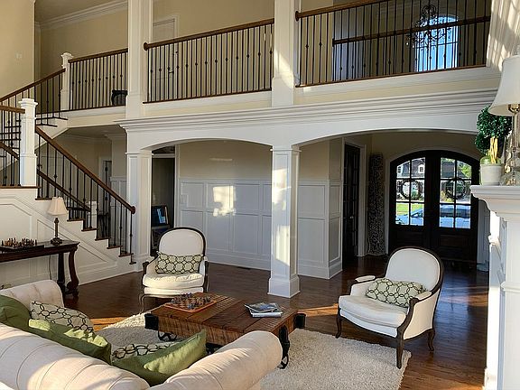 Custom built home in Ewing Ford Place Subdivision with expansive wooded lot and no detail spared. This open concept home features architectural details throughout including coffered, barreled, vaulted, and tray ceilings, white wainscoting, and built-in bookshelves, drawers, desks, windowseats and cabinets throughout. There is a two-sided gas fireplace between the living and kitchen and an additional two story wood fireplace in the vaulted ceiling hearth room. There are hardwood floors throughout the main and upper stories. The home features a luxurious master suite with marble counters, while the kitchen offers custom white shaker cabinets with a large island, quartzite counters with marble backsplash, and 48" appliances including a commercial style gas range with double oven. Guest baths feature marble and granite counters while the home offers two laundry rooms, spacious his and her master closets, multiple office spaces, custom floor to ceiling mudroom storage, expansive pantry, three car garage, playroom or optional 6th bedroom, homework center for children, and more. The house has a finished walkout basement with theater and surround sound, partial kitchen, exercise room, private guest bed and bath, open play area, large storage area and fourth garage perfect for outdoor toys and tools. Premium outdoor living abounds with a large vaulted screen porch, expansive deck, and huge covered deck below. The large lot backs up to wooded acreage and is the perfect size for family activities. This exquisitely designed home is full of large windows and lots of natural light, neutral finishes, and storage at every turn. Greenway paths from the neighborhood lead to trails at Keriakes Park and Lover's Lane Soccer Complex. Shown by appointment, realtors welcome. Serious inquiries only. 270-996-0702.