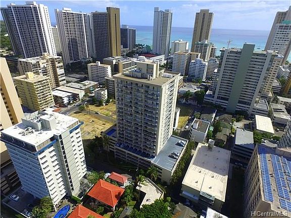 Come home to this quaint 1 bedroom 1 bath unit at Waikiki Lanais. Close to everything including the International Market Place, Waikiki Beach, Honolulu Zoo, and Ala Wai Golf course. Amazing rooftop deck with BBQ and beautiful views of Waikiki.Tons of amenities that feature a Pool and hot tube on the 6th floor, exercise room, and sauna, and storage area for beach gear. Maintenance fee includes Cable TV, Electricity, Gas, Hot Water, Internet Service, Sewer, Water. Building has recently been painted. Wonderful city views from your lanai. View HD Walking video tour in Virtual tour section.