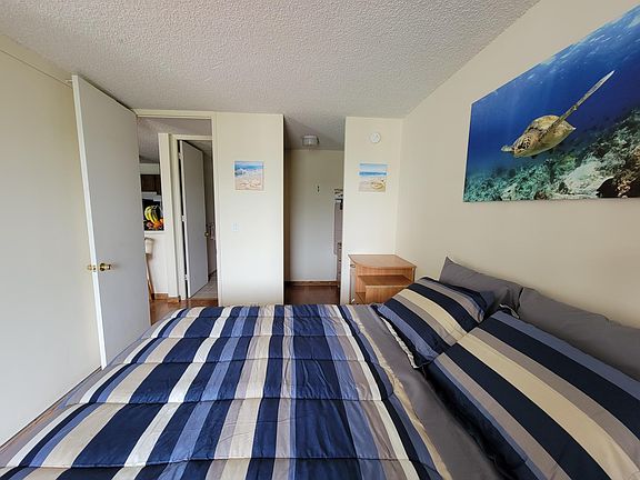 This spacious condo offers a fully equipped kitchen with stove, refrigerator, microwave, dishwasher, rice cooker, coffee maker and all utensils. Air conditioning, Smart TV with cable. High speed internet with WiFi connection. Computer desk with monitor and HDMI cable. Extra USB outlets for phone chargers. Spacious walk-in closet. Sleeping arrangements for 4 guests are accommodated with a queen bed in the bedroom and a full size sleeper sofa in the living room.