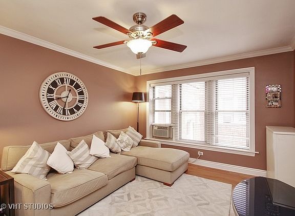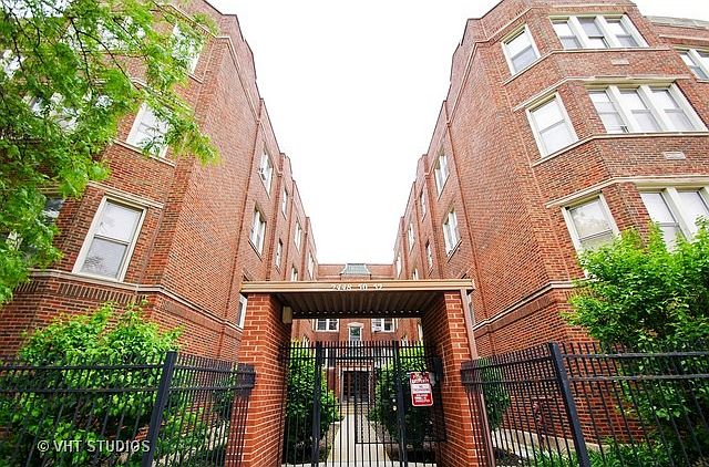Vintage courtyard building in trendy neighborhood w/ DEEDED PARKING SPACE. Updated kitchen w/ granite counters & maple cabinets. IN UNIT WASHER DRYER INCLUDED! Beautiful hardwood floors and crown molding. Custom built radiator boxes. SHARED DECK. STORAGE UNIT. Walk to Brown Line, shopping and restaurants. Close to Roscoe Village.