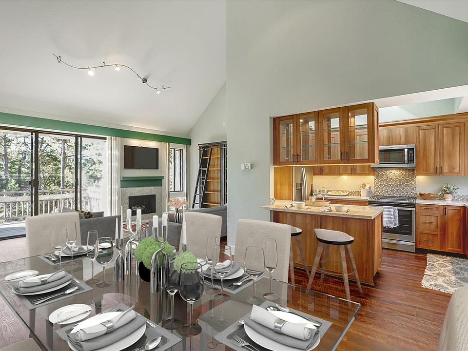 This is the one you've been waiting for! Remodeled Carmel townhome in a serene setting makes the perfect low-maintenance residence or weekend getaway. Spacious 3 bedroom condo at High Meadow Outlook features numerous skylights, a primary bedroom suite, gorgeous kitchen & living room on the main level. Downstairs are two additional bedrooms, a full bath & a laundry room. Recently updated kitchen is light & bright with high ceilings, beautiful cabinets, granite counters & stainless steel appliances. two remodeled baths- the primary has dual sinks & a large soaking tub for relaxing at the end of the day. The spacious living room has vaulted ceilings, a large deck & fireplace perfect for cozy nights by the fire. 3 decks & a patio add livable space. Desirable unit with gorgeous forest views & peek of the ocean. Small complex in a beautiful, private setting just minutes to downtown Carmel & the oceanside! Single car garage plus open parking. Located w/in Carmel Unified SD. Virtually Staged.