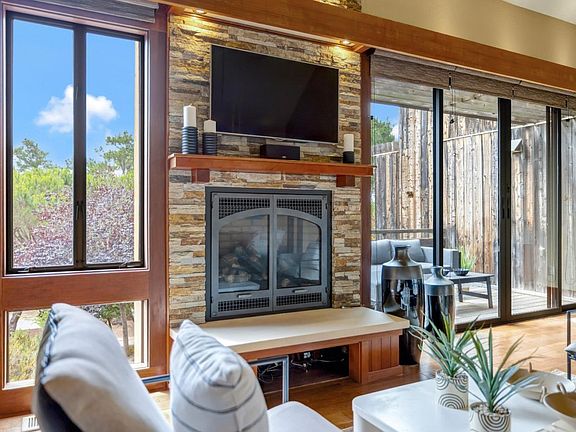 Discover the essence of Carmel charm in this beautifully updated two-bedroom, two-bath townhome with a dedicated office, perfectly perched just moments from downtown Carmel, Pebble Beach, and Monterey Peninsula Hospital. Blending timeless seaside character with modern sophistication, this serene end-unit retreat offers both luxury and privacy in an unbeatable location. Step inside to find a thoughtfully designed interior featuring rich hardwood floors, custom lighting, and an elegant palette. The main level showcases a spacious primary suite, a light-filled kitchen with custom cabinets, mountain views, and a dramatic living room with vaulted ceilings, an inviting fireplace, and a deck ideal for enjoying breathtaking sunrises and sunsets. Downstairs, a second bedroom, full bath, laundry room, and a flexible office or study open onto a tranquil walkout patio, your own private escape for morning coffee or evening wine. Nearly every window frames peaceful, mountain views, creating a constant connection to nature. Additional highlights include a detached two-car garage and a workshop and storage area, rare amenities in this coveted location. This is coastal California living at its finest. Sophisticated, quiet, and effortlessly close to everything that makes Carmel extraordinary.