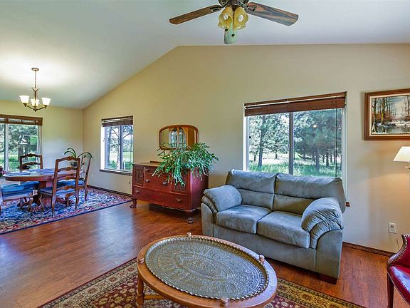 Feast your Eyes on this Beautiful Home on 10 Acres Close in to Town with a 40X60 Shop with 18'Ceilings and a 14' and 10' Doors and a 3BR In Law Setup, Vaulted Ceilings in Living/Dining Room, Gleaming Laminate Wood Floor, Spacious Main Floor Master Bedroom and Office, Mn Flr Family Room with Wood Stove, Cross Fenced For Horses, Treed Private Acreage with your own "shooting range", Mountain Views and Sunsets Await! See thVirtual Tour for additional photos of this beautiful home