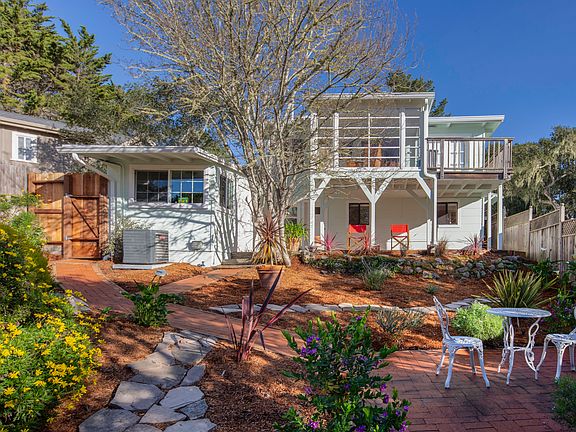 This light, bright 2 bedroom one bath upstairs with a legal studio downstairs with bath has been recently updated, but still retains the charm and character of days gone by. The kitchen has high ceilings with lots of cabinet space. Original hardwood floors have been resurfaced. The house is situated on a street-to-street lot with peaceful views of Pescadero Canyon plus a glimpse of the ocean with beautiful sunsets, about a mile from the beautiful Carmel Village.The property is entirely fenced with a comfortable patio in the front. There is off-street parking and a one-car garage, The home also has central heating and air conditioning.