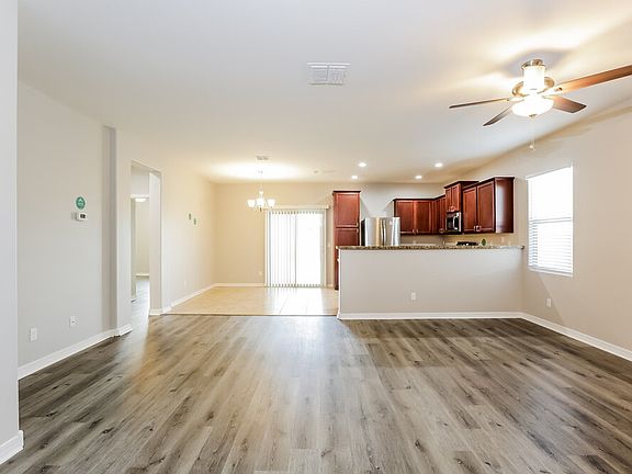 Please note, our homes are available on a first-come, first-serve basis and are not reserved until the lease is signed by all applicants and security deposits are collected. This home features Progress Smart Home - Progress Residential's smart home app, which allows you to control the home securely from any of your devices. Want to tour on your own? Click the "Self Tour" button on this home's RentProgress. This move-in ready, three-bedroom, two-bath rental home in Buckeye is waiting for you. With 1,385 square feet of space and an open floor plan, this house delivers if you love entertaining or just relaxing. The living area offers high ceilings, a ceiling fan, and vinyl plank flooring. As for the eat-in kitchen, it's well-appointed with stainless steel appliances, granite countertops, and a pantry. The master suite comes with a private bath and walk-in closet. This home also features a covered patio, fenced yard, and convenient two-car garage. Call us today to see this renovated home.
