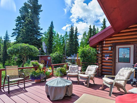 ABSOLUTELY CHARMING! Here is your chance to own a little piece of Alaskan Heaven! You are going to LOVE over 3 acres of beautifully landscaped property on a PRIVATE LAKE! This park-like setting is fenced w/greenhouse & work shed. Home has four bedrooms updated kitchen and bonus dining space in the sunroom! You will love the sunny southern exposure deck and walkway to the lake.