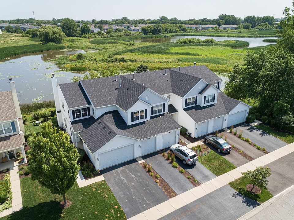 Welcome to your beautiful updated 2 bedroom 2 bath home on the water in Naperville! This condo features tastefully updated kitchen with new flooring, granite counters, backsplash, and 2019 stainless steel appliances. Entire living space gets fantastic light with high vaulted ceilings and multiple exposures. Living room has deck overlooking the water big enough for a table and grill or couch seating. Large Master bedroom faces the water and has updated ensuite featuring double sink and granite counters as well as a walk-in closet Second bedroom has plenty of space and large windows bringing in lots of light. Full and updated second bathroom. Washer and dryer in-unit, attached 2-car garage, and newer H2O tank. Come schedule a tour of this beautiful top floor and end unit soon!