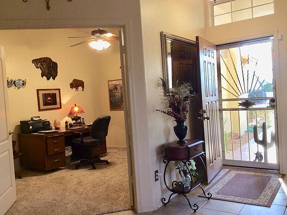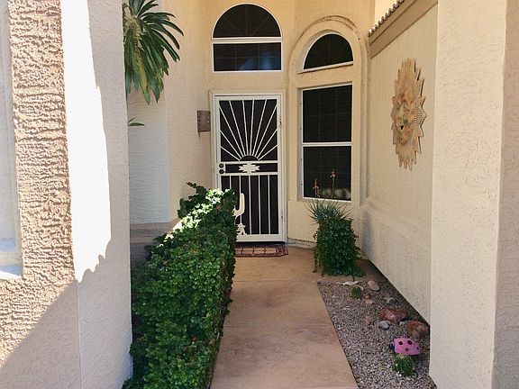 A little piece of paradise on a quiet cul-de-sac in sought after NE Mesa with NO HOA. Pride of ownership shows in a well maintained 3 bedroom, 2 bath, plus office/den home with a security system. One of few private lots on Painted Mountain Golf Course. Professionally designed, mature landscaping with travertine patio, pebble tec pool with beach front entrance, sand filter and a new Pentair Whisperflo pump. Enter the home to the living room which leads to an open concept kitchen/family room with WB fireplace, dining space, quartz countertops and stainless steel double deep sink. Lots of cupboards and stainless appliances and gas range. The huge 21x14 master bedroom has an additional 20x11 master bath; with an oversized shower, garden tub, separate vanities and His and Hers walk in closets with built in storage. Both bathrooms have been upgraded with Brazilian granite countertops. A laundry room with sink leads to the 3 car garage with built in cupboards and drop down stairs to attic. A large 7.5 ft. gate leads to a flagstone walkway, adorable Sante Fe style stucco storage shed and grassy area in the East facing backyard that affords beautiful desert sunrises and cool afternoons. Other features include: a Pella sliding door with inset blinds, newer neutral plush carpeting and paint throughout, soaring ceilings and fans in each room. A water softener and RO system are also included. All windows have blinds and curtain rods that stay and most have solar screens. Our neighborhood participates in a Neighborhood Watch Program thru the Mesa Police Department making it a safe environment with good neighbors. Great location close to Sprouts Market, Home Depot, Target, dry cleaners, gas stations, grocery stores and restaurants. Easy access to 202 Red Mountain Freeway, Sky Harbor and Mesa Gateway Airports. Near Boeing, Post Office, Banner Hospitals, Superstition Springs Mall, Usery Mountains, Salt River for tubing, Tonto National Forest, and Saguaro Lake for boating, fishing and picnics. Kitchen/Family Room custom curtains and some furniture are negotiable on a separate bill of sale.