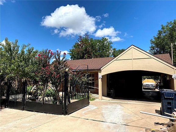Check out this bungalow located in the heart of OKC. There is a gorgeous landscaped space out front perfect to grow flowers or any foliage to keep your front porch looking great! Inside this cozy home, features an open living area into the kitchen, 2 bedrooms, and 1 full bath. The home features a large 2 car attached drive-thru carport, with built in shelves and electric. Large concrete pad surrounds the exterior of the home, perfect for additional parking, storing equipment or adding to the square footage of the home. This home requires some TLC and would be ideal for a handy first time home buyer or an investor!