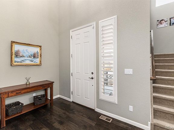 WELCOME HOME to this stunning, five-bedroom, four-bath + office home in the sought-after Vista Ridge Reserve community! Highly upgraded from the builder and then taken a step further by the owners adding designer touches , built-ins, storage and an amazing high-end basement finish. A fully customized laundry room and custom mud-room greet you from the garage to make entry with inclement weather a breeze. Espresso wood floors throughout the main floor open up the main floor plan with an eating space, gourmet kitchen and great room, allowing this timeless layout to be relevant for many years to come. Plantation shutters have been added throughout the home, even electric blinds! You'll also find a powder room, primary bedroom with five-piece bath and a main floor office with built-in shelving and drawer system on the first level. Step outside on the deck enjoying views of the maintained water feature and green space while you sip your morning coffee.