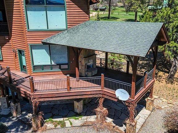 35.2 Acres with a guest house and set up for horses. Navajo River Ranch is one of the most desirable gated communities in Archuleta County and it has two private entrances into the National Forest. The property comes with an extra workshop/garage, a growing dome, a round pen, 3 stall + barn and numerous out buildings. The main house is 5,141 square feet and the guest house is 2,028 square feet. The tack room in the barn is heated and has hot and cold water. The gourmet kitchen is large enough to hold 4 cooks and there is a separate dining room. The bathrooms and kitchen counters are granite, the doors are knotty alder. The floors are hardwood, Travertine and carpet. The solar power runs select appliances and pumps for radiant heat and is backup for in floor heat with 16 zones, the propane hot water heater is 120 gallons and there is a state of the art Aquasana water filtration system. This property is bordered by BLM and has two 1800 gallon cisterns and two 1000 gallon buried propane tanks. This property is a must see!