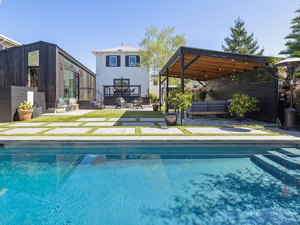 Seller considering any and all offers! Now is your chance to make this slice of paradise yours. A true oasis, the backyard boasts an in-ground heated salt water pool and hot tub, perfect for fun during the day and relaxing at night. The pergola offers a shaded area for outdoor dining or lounging, creating an ideal setting for entertaining guests or simply enjoying our irresistible Bay Area weather. This property features a sleek and modern permitted studio ADU (added in 2023) with full bath including attached Murphy bed, providing flexibility for use as a guest suite, home office, or rental opportunity. Period details throughout the main house and newly refinished hardwood floors add character and create an inviting atmosphere. The layout is open, the rooms are generously sized, and A/C keeps it cool. As gorgeous as the inside of this home is, nothing compares to what you'll find outside in the jaw dropping backyard. Conveniently located minutes from popular restaurants, coffee shops, shopping, and main commuting routes, this home truly has it all. With the allure of indoor-outdoor living and the convenience of modern amenities, don't miss the opportunity to make this oasis your own.