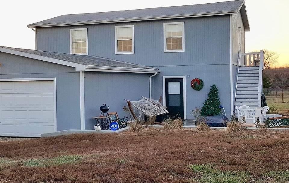 Wonderful opportunity! This 1728 sq.ft. home sits on 27 acres along side a new, unfinished 7190 sq.ft. building to complete as your country home or business. The acreage can be subdivided for future sale or development.New building is on separate lagoon and has radiant heat installed in floors and large loft framed in. Additional electric and water in place for future development.1 mile from other com'l development on K268 near Pomona Lake.