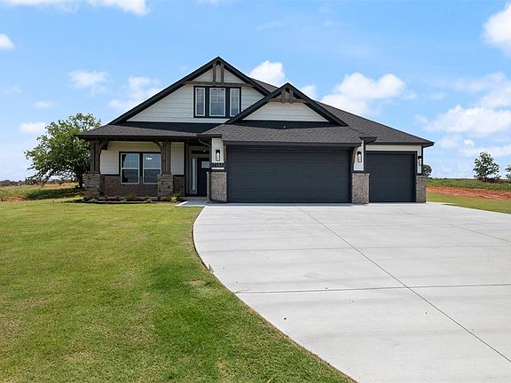 *Price Reduced* Welcome to this stunning open entryway, filled with an abundance of natural light and seamless access to the mudroom, study, kitchen, and bedrooms. The kitchen showcases an expansive island with ample seating, adorned with elegant quartz countertops and top-of-the-line built-in appliances. As you step into the living room, be captivated by the cathedral ceiling adorned with a majestic wooden beam, exquisite wood flooring, and an enchanting fireplace. The primary bedroom is generously sized, complemented by a primary bath featuring dual quartz vanities, a beautifully tiled shower, a luxurious soaking tub, and an incredibly spacious walk-in closet. Dow’s Hills is located between Pennsylvania and Western on SW 240th Street just west of the highly desired Washington Public Schools. This community is in close proximity to I35 and only 35 minutes from downtown Oklahoma City. The one-acre homesites will feature rolling hills, ponds, and mature trees. Go ahead and build that storage building on your property, raise show animals, explore the land, and enjoy the perks of life in the country. Included features: * Peace-of- mind warranties * 10-year structural warranty * Guaranteed heating and cooling usage on most Ideal Homes * Partially landscaped front & backyard *Floorplan may differ slightly from completed home.