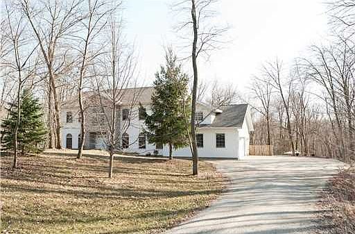 Nestle Yourself Amidst the trees and next to the fireplace in this 2-story home in Stone City Estates and only an easy drive to 151. Your Standards will be raised, with this steel frame one of a kind home. You'll enjoy 3 bedrooms, 2.5 bathrooms, distinguished formal living room, gracious dining room, front to back windows with views of wooded terrain, master suite with garden tub, large closet, separate shower, dual sinks, engaging family room, elaborate kitchen with appliances included, custom cabinets, breakfast bar for midnight snacks, first-floor laundry, open, walk-out basement, large 2 story, foyer, new paint, 24x30 garage, storage building, balcony from the office area, large deck, 2,976 Sq. Ft. Own your piece of paradise with this large home, on a peaceful 4+ Acre lot!