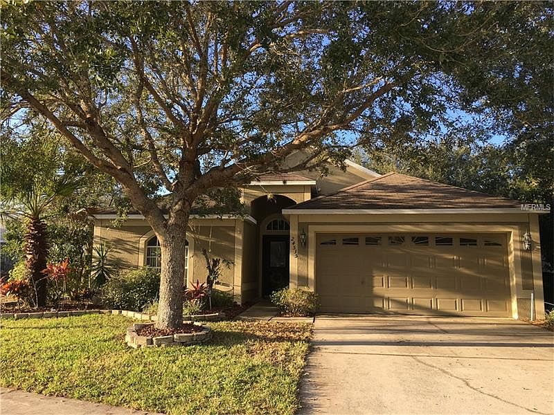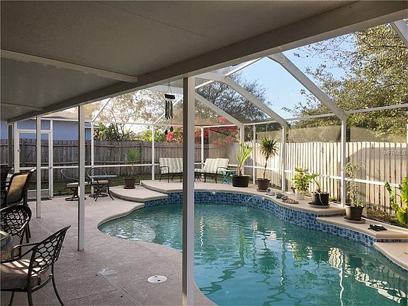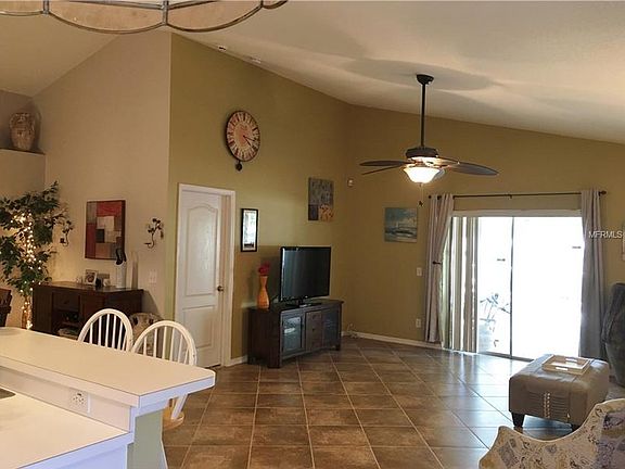This lovely home offers 3 bedrooms, 2 baths, 2 car garage and private pool with fountain. Open floor plan with vaulted ceilings. Kitchen with ample eating space, pantry, appliances and breakfast bar. Dining room area also. Living room leads to screened and covered lanai overlooking pool. Private fenced yard. Master bedroom with walk in closet and master bath with dual sinks. Second bedroom has a walk in closet also. Newer diagonal tile flooring in living room and master bedroom. Neutral decor. Exterior of home painted approx 4 years ago. New air conditioning in 2013. New pool pump. Sprinkler system. Washer and dryer stay. Move in condition. Low HOA fees. Walking distance to school. Easy access to I75 and 275, Outlet Mall, hospital and airport.