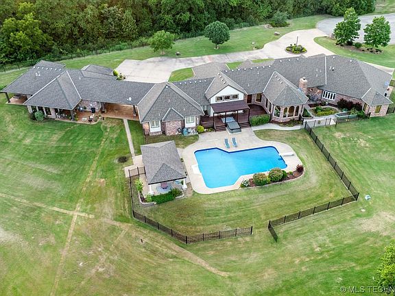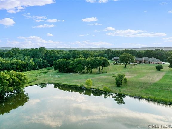 If Privacy with a view is at the top of your list, this custom one owner home and connected guest cottage located south of Bartlesville on 9.4 acres m/l in Philson Hollow is a must see! Oh, the beautiful sunrises or just view the mirror-like reflection on the pond from several rooms of the main home. At the end of your day, take a dip in the pool or simply relax and gaze at the stars from all the outdoor areas this home offers. Play golf on your own private 18-hole course on the weekends with family & friends! This wonderful hidden like estate is at the end of paved road but just a short drive to restaurants & shopping in town. Main home has 4 bedrooms & 3 full baths and a powder bath. Private office just off the main bedroom suite, indoor climate-controlled basketball court, and reading/library area, Formal dining, the Great room w/ wood burning fireplace is open to a spacious kitchen/island, Theater room, oversized laundry area. 3 car garage along with a shop next to a circle driveway and extra parking. The Guest Cottage is connected to the main home with a 2-car covered breezeway! This spacious guest home has two covered back patios with views of the pond and golf course and a living area that's open to the dining and kitchen. Enter the extra space off the living room and use this multi-purpose room for games, a sunroom or reading area. Spacious main bedroom has a connecting full bath with separate shower. A 2nd bedroom and hall bath and a large laundry room complete the cottage. With an acceptable contract, at closing the Seller will pay the Buyers closing cost, prepaids, and/or escrows, or points not to exceed $12,000.00.