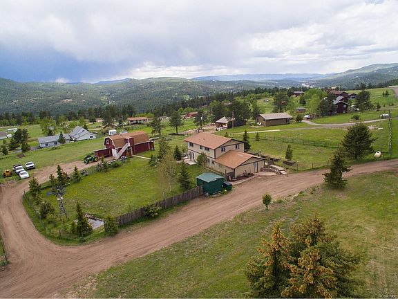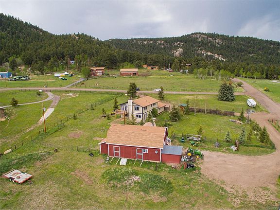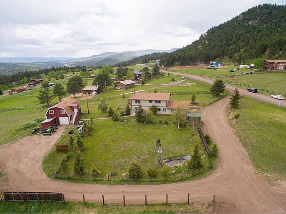 Experience extremely rare 360° views on flatland every moment of every day! You are guaranteed to fall in love with this unique, expansive lot consisting of nearly 2 acres. This 4 bedroom 2 bathroom raised ranch offers country living at its finest. The stunning ruby red barn has an in-law suite upstairs which can be used however you choose. This home boasts custom wood detailing throughout including flooring that adds an extra warmth on top of the cozy fireplace. Stainless steel appliances adorn the kitchen, along with a wonderful wooden bar for more intimate dining or convenient meal prep. Step out the sliding doors onto a divine deck that hugs this home to its core. Surrounded by majestic mountains and amazing Conifer schools, it is also easily accessible off of Highway 285. This truly is a heavenly home located in the incomparable Angel Acres. Wake up to spectacular sunrises and relax your evenings away to exquisite sunsets. This home is where your heart is!