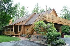 Beautiful two story log home nestled on 9.6 wooded acres with upscale kitchen, granite counter tops, spacious master suite, attached 2 car garage plus 2 car, 2 story detached garage.