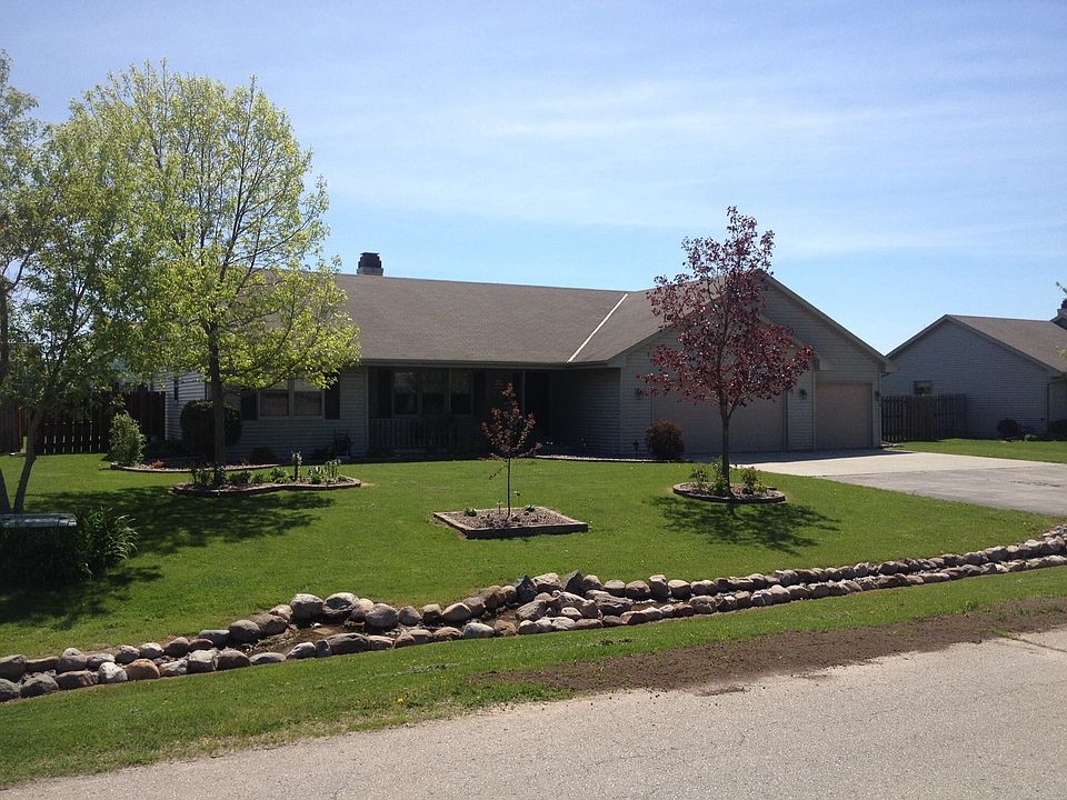 Enjoy this beautiful rural neighborhood just 5min from Green Bay. Nestled on a quiet dead end road. Great for kids and minutes from Red Smith School. Pride of ownership shows in this split bedroom ranch. All new flooring and 6 panel doors thru out. Vaulted ceilings in the living room and kitchen. Kitchen features oak cabinets, pantry and patio door that leads to a large deck and fenced in yard. Spacious living room features a gas log fire place. Master bedroom has private bath and walk in closet. 3 1/2 stall garage with the 3rd stall extra deep. Additional amenities include a beautifully landscaped yard. New furnace, new dishwasher, and window treatments and a reverse osmosis water system. Finished rooms with plenty of storage and living area in basement.