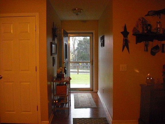 This is a beautiful home with 3 bedrooms and 2 full baths! The Master Bedroom is a suite with the powder room sink and cabinets open to the bedroom and the tub/shower and commode behind doors makes it conveint to get ready for work in the mornings Plus a walk-in closet! The guest bedrooms are good sized and have spacious closets as well. Large Living room has beautiful newer hardwood from Livinging room down hallway and looks great! the Newer Kitchen has Newer Stainless appliances and new vinyl flooring that will convey with the house! House also has a 2 car garage with shared driveway and at this point it has a dry bar set up and lights for a party and man can those puppies party! lol Garage also has back walk out door to covered porch with a metal roof and view and part ownership of the fishing pond and wildlife! Talk about relaxing! All located on approx. 1.5 acres with plank fencing around most of it. Call me for more info or your personal showing! you won't regret it!