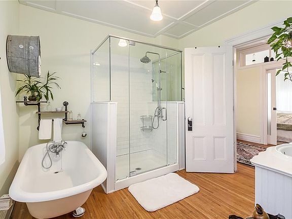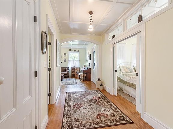 Don't miss your chance to own this VERY RARE 1800's farmhouse on 1.3 acres in Irondequoit! This home has been masterfully restored to accentuate its character and charm and has gorgeous coffered ceilings, original hardwood flooring and arched entrances. This home is set back from the road to offer great privacy and a very secluded peaceful feel while being conveniently located close to the expressway. You will love the first-floor master bedroom with custom built pocket doors and a custom built hidden door that leads to a walk in closet with first floor laundry! The first floor has a new full bathroom with an amazing clawfoot soak in tub and glass enclosed shower. The second floor currently features 2 additional bedrooms, 2 full bathrooms, a living room and a kitchen with its own separate entrance that can be used as an in-law or be converted into 3 bedrooms. The hot water tank and sub pump are both only one year old. The massive backyard has tons of mature landscaping and the occasional deer sighting! You will love enjoying coffee on the front porch or on the back deck that overlooks the historical black walnut tree. Delayed negotiation, all offers will be reviewed 7-18 at 7PM.