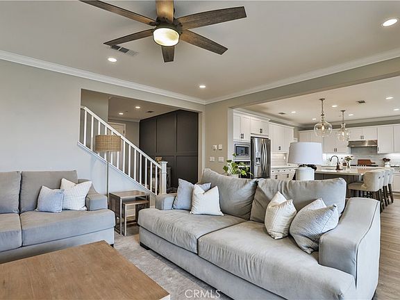 Enjoy the resort-style amenities in the community of Bedford in South Corona. This premium, larger view lot, has 4 bedrooms plus a loft/media room, is fully detached with no common walls, a beautiful modern open kitchen, perfect for hosting and entertaining, shutters throughout, upgraded and additional cabinets added, upgraded luxury vinyl plank flooring, upgraded countertops and tile, custom closets, two customized walk-in primary closets, crown molding, epoxied 3-car garage floors, overhead garage storage racks, enclave outdoor patio with fireplace, custom BBQ island with beverage refrigerator and storage, pet-friendly turf in the backyard, tankless water heater, and seller-paid solar panels. Over $100,000 in upgrades for you to appreciate. Walking distance to the Hudson House and The Shed, Bedford’s community centers where you can swim, gather, play in the parks and playgrounds, go to the gym, BBQ with your friends, take your dog to the park and wash, or enjoy the various community trails. Easy access to the 15 freeway, close to shopping, restaurants, social and lifestyle amenities.
