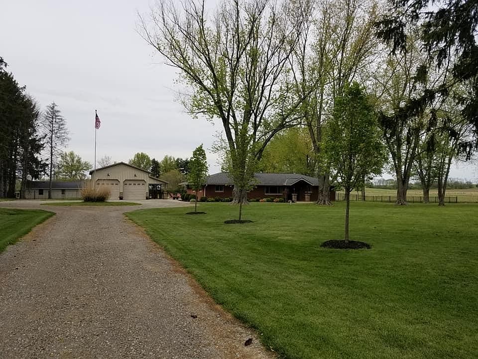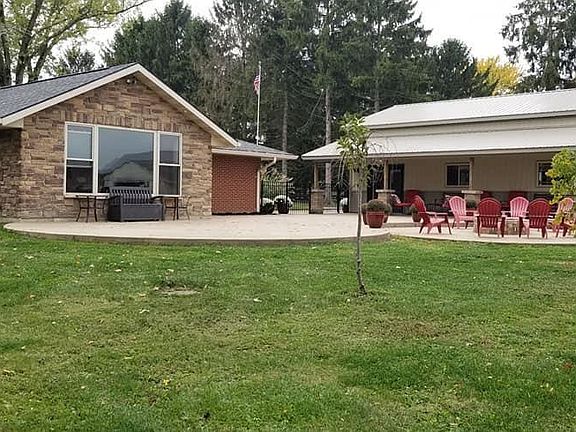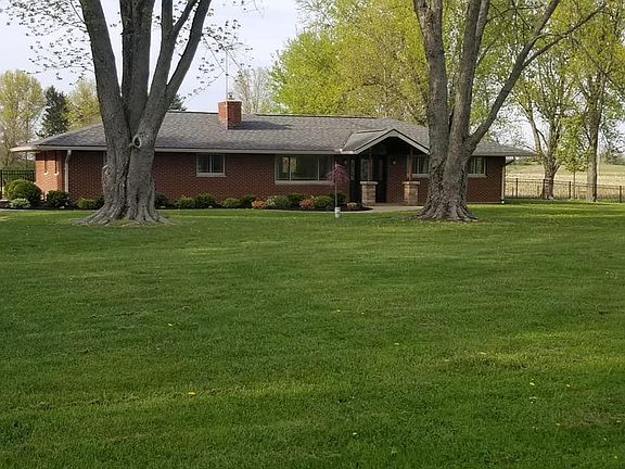 Desirable country setting. 4 bedroom, 2 bath brick ranch. Open floor plan with fireplace. Master bedroom ensuite, his/her walk-in closets. Custom cabinets, quartz tops, Geothermal, Detached 24x36 insulated garage, 24x48 shop, exposed aggregate 36x50 patio with fire pit and covered porch. Mature trees, wide circle driveway, fenced property.