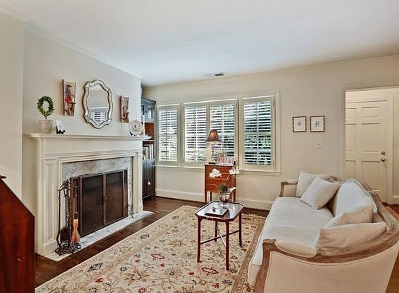Classic Buckhead ranch gem updated better than new! Beautiful, park-like setting with mature oak trees. Once inside, the open floor plan, warm hardwood floors and detailed molding will wow you. Kitchen with granite countertops, island, travertine floor and backsplash just sparkles. Entertain in the formal dining area, sitting area with wood-burning fireplace, the den, sunporch, or in the flat, fenced yard with firepit and shaded terrace. Master with large closet has beautiful bath. Second bedroom and bath are equally lovely. This home looks good on you!