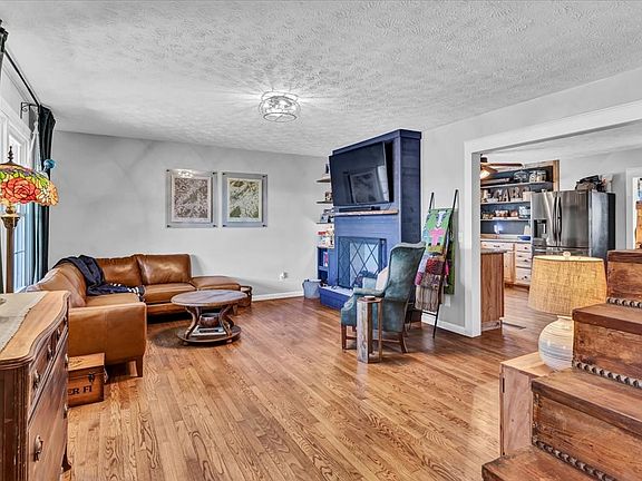 Maintaining its rustic charm, this home features original hardwood floors that exude timeless elegance. The large sunroom and expansive covered porch offer idyllic vantage points to appreciate the panoramic views of the pond. Additional amenities include a versatile yard barn, which the owner currently employs as a workout room.