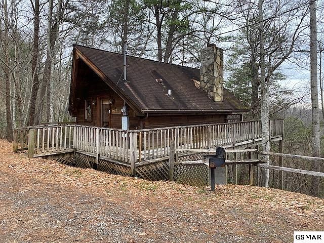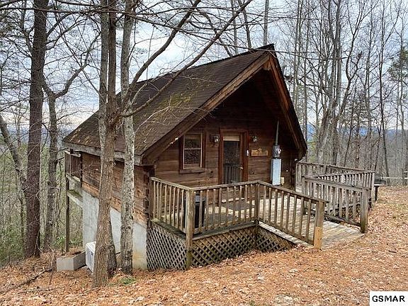 This is a one room cabin. This 1 bedroom 1 bath log cabin home is located in a quaint and cozy area just minutes from Pigeon Forge and Gatlinburg offering plenty of peace and quiet. Featuring cathedral ceilings, full kitchen with breakfast bar, natural stone wood burning fireplace,wood floors throughout, romantic double jacuzzi and wraparound deck with hot tub and wooded views. All information was taken from the county tax records and the buyer should verify all information. The well is shared. There is a HOA with Sky Harbor PHOA that has not been been set up yet for road maintenance.
