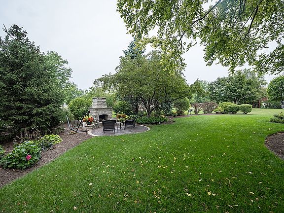 Professionally landscaped with stone fireplace, paver patio, landscape lighting and lawn sprinkler system.