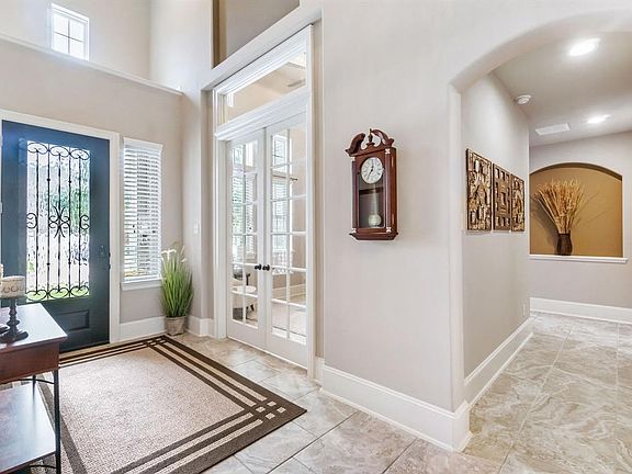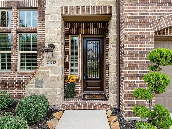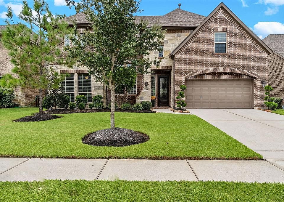 Highly sought after Westin Homes Carter floorplan. Gorgeous entryway with soaring ceilings and views of the backyard through the large windows in the living room. Study off entryway with French doors and shiplap accent wall. Formal dining room with updated farmhouse light fixture. Kitchen with stainless steel appliances, granite countertops, and shiplap island. Living room is open to the kitchen with two story windows letting in an abundance of natural light. Spacious Master bedroom with sitting area. Spa like Master bath with walk in shower, jacuzzi tub, and his and her closets. Guest bedroom on first floor at the front of the house with en-suite bath. Beautiful curved iron stairwell leading to game room. Upstairs media room with raised stadium seating and fiber-optic stars on the ceiling. Three bedrooms and desk area with granite countertop and built-ins. Backyard is an oasis with covered patio pool, hot tub, and turf grass. Convenient to The Woodlands, Hwy 99, shopping, and dining.