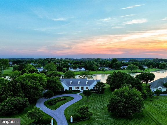 Nestled within the Chance Hope Farm community, this stunning property spans over 2 acres on the serene Hambleton Cove, a protected area off the Miles River. Enjoy breathtaking sunset views and access to a private dock equipped with water and electricity. The home features a circular driveway leading to an attached two-car garage with a workshop. Designed for one-level living, it also boasts a massive, unfinished second level currently used as a walk-up attic. Outdoor living is enhanced by a patio with an electric awning. Inside, you'll find three bedrooms, two and a half baths, a separate dining room, and an eat-in kitchen with bar seating. The family room, adjacent to the kitchen, offers a vaulted ceiling, built-ins, cove lighting, and a cozy wood-burning fireplace. Additional spaces include a sunroom, an office, and a spacious recreation room.