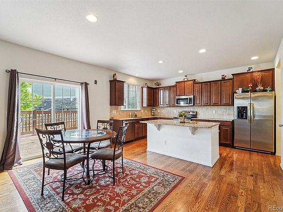 This stunning home in Sorrel Ranch has it all including great curb appeal! Light, bright and airy open layout! Gorgeous hardwood floors throughout the entire main level! Enjoy cooking in the beautiful kitchen with slab granite counters, tumbled stone tile backsplash, 42" cabinets with crown moulding, stainless steel appliances (All Appliances Included), and large island with extra seating! There is eat-in dining space in the kitchen. Elegant formal dining room! There is also a private, main floor office perfect for those who work from home. Upstairs features 4 bedrooms, 3 full bathrooms, and a Great loft! The loft is great for a secondary family area or gameroom. The master oasis is private and boasts a 5 piece bath and walk-in closet. Convenient upstairs laundry! (Washer and Dryer Included.) No more carrying baskets up and down the stairs! The backyard requires low-maintenance so you can enjoy"extra" family time! The back deck is an entertainers delight! The perfect size to entertain year round! Full unfinished basement to design and finish to your liking! Close to Aurora Southeast Recreation Center, Aurora Reservoir, Southlands Mall, Lots of Parks and Trails! Near-by, Award Winning Cherry Creek School District! Schedule your showing and fall in love today!
