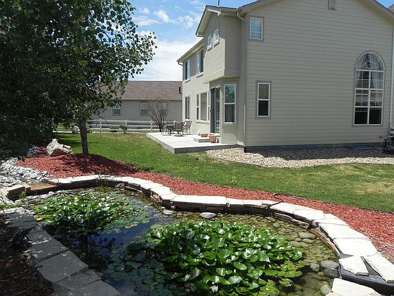 Move-In ready in Murphy Creek Golf Community. Excellent 1/4 acre lot backs to green belt. Street like a cul-de-sac! New Carpet, interior paint, fence. Roof is 4yo. Popular floorplan w/3 beds, 3 baths, office, 3 car garage. Soaring vaulted entry, dining room. Gourmet eat-in kitchen boasts Granite, 42in cabinets, island, desk, high-end SS appliances. Built-in speakers, ceiling fan, plantation shutters, fireplace in spacious family room. Fabulous Master Suite features sitting room w/fireplace, entertainment built-ins, speakers plus attached 5-pc bath, huge walk-in closet. Convenient upstairs laundry near all 3 beds, 4-pc hall bath. Tons of storage closets. Finished oversized garage w/loft storage, shelves, exterior door to back. Enjoy the expanded back patio, 2nd patio for firepit. Gorgeous water feature waterfall & pond! Very private w/mature landscaping. Walk to schools, parks. Murphy Creek has golf, pool, tennis, clubhouse for low HOA. Easy to DIA, DTC, E470, I70, Buckley AF Base.