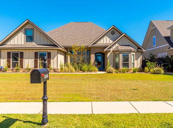 Southern Luxury is within reach at this oversized cottage home in one of Daphne's most desired communities! This 2550+ Sq. ft. 3 bedroom/2 bath + bonus + office + formal dining offers an open floor plan, high tray ceilings, extra-large windows, huge custom master walk-in closet and beautifully tiled walk-in shower. Wood flooring flows throughout the majority of the home with stage 3 carpet in the bedrooms and oversized tile in the wet areas. Large corner lot with custom shadowbox fence offers the privacy you desire in a cozy section of this amenity filled community. A board and batten faade adorns the exterior with German-smear accented brick for the perfect blend of classic Southern style and modern construction. Bellaton offers 3 stocked fishing ponds, tons of room for biking and running, and a beautiful pool & clubhouse with splash pad. Gold fortified construction, high insulation, lots of custom owner additions and Rain Bird irrigation system. Priced well below comps!