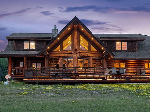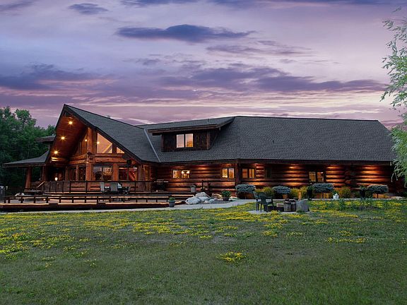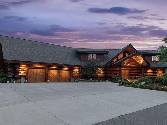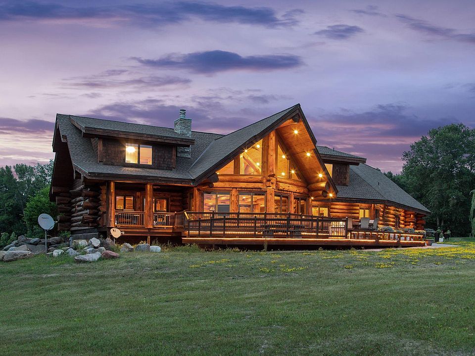This exquisite custom log home on beautiful School Lake is truly impressive! Perfectly situated on 43 acres, the 6656 square foot home features incredible logs imported from British Columbia, stunning kitchen with top-of-the-line appliances, granite countertops, and open living spaces. Features also include a beautiful primary suite with walk-in-closet, finished lower level with additional bedroom and bathroom, and huge craft room. Enjoy the gorgeous panoramic lake views from the oversized deck and patio! Property also features a 6-stall barn with tack room and hay storage, large 3-car garage, and stunning frontage on School Lake which boasts great fishing and swimming!