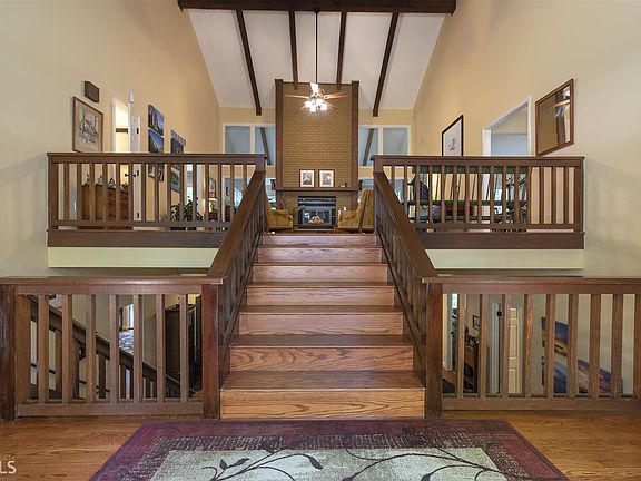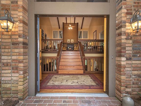 Lake Views from almost every room! Upon arrival, you are greeted with the soothing sounds of the Koi pond. Enter brick-wall foyer to a few steps up to floor-to-ceiling brick Fireplace and high Vaulted ceilings with Wood Beams in the family room. Reminds you of a lodge resort. Enjoy coffee and a good book on the lanai just outside of Master bedroom and say "Ahhh". Upgraded kitchen has an ample island adjacent to Dining Room-large enough for family or a party of friends. Easy entertaining and lots of prep space. Out to the Sunroom/Music room is multi-purposed. The terrace level has Fireplace and 3 more Bedrooms--perfect place for card game, pool table and conversation. Huge Bar area and Wine Cellar. Sit on the Patio before heading to the dock for a day on the lake. Laundry room offers ironing table, sink and chute from Master BR. Even the family dog has a door out to fenced play area! Detached garage has access to stepless level deck to enter from the side door. Very spacious , comfortable and versatile home with style. PLUS--Enjoy Nature from the extra lot next door included with this cul-de-sac property. The Trees and Wildlife are very quiet neighbors:)