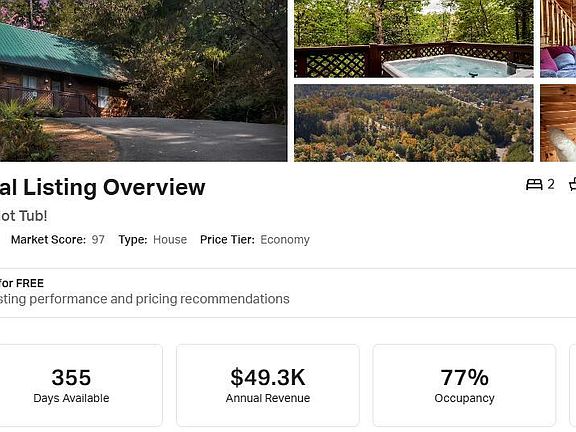 Turnkey Short-Term Rental Investment with Proven Income - No HOA! Charming, fully furnished, income-generating cabin nestled in the heart of the Smokies with exceptional short-term rental potential. Boasting a 4.97-star AirDNA rating and generating over $50,000 in rental income in 2024, this proven income producer is ready to elevate your portfolio. Situated on a private, wooded lot, the property offers a paved driveway with plenty of parking for guests and a large L-shaped deck, perfect for relaxing while soaking in the peaceful mountain surroundings. The property has been thoughtfully updated with a new metal roof, HVAC, hot tub, soaking tub, stackable washer/dryer, refrigerator, pump house, microwave, hot water heater, and dishwasher, ensuring both durability and guest satisfaction. The inviting interior features natural wood flooring throughout, creating a warm, authentic cabin atmosphere. Designed for comfort, it sleeps like a 2-bedroom, accommodating up to 6 guests with a primary suite, a loft featuring a queen bed and workspace, and a sleeper sofa in the living area. Guests love the private hot tub, and beautiful rock fireplace, while the paved roads and no 4WD required access make it an ideal year-round retreat. With no HOA fees, no rental restrictions, and all furnishings included, this is a turnkey, hassle-free investment opportunity. Plus, with the right management and minor decor updates, the property holds income projections of up to $75,000 annually. Walkthrough video, a detailed rental projection, proforma and 2024 rental history all available upon request.