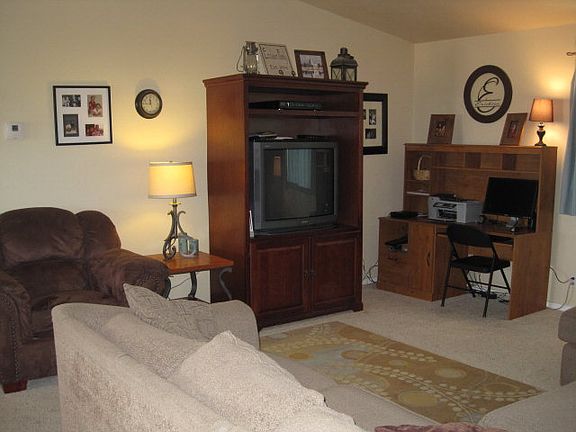 GREAT BUY! Newer one level home on quiet street that is handicap accessible. Beautiful living room with space for a piano too! Vaulted ceilings, tiled entry, kitchen & dining area, baths and laundry too. Granite counters in kitchen with nice center work station that accommodates bar stools and lockers for organization are just some of the great features of this home. French doors off dining lead to a (approx. 12x20) no maintenance deck where you can enjoy backyard bar-b-ques. Spacious master has walk-in closet, jetted tub and room to relax. Two more good sized bedrooms, a den that could be computer room, craft room, or 4th bedroom for family and/or guests. Separate area off den for t.v. area, computer, or studying. Gas heat, AC, ceiling fans, two tone paint, landscaping, full sprinkler system, and covered front porch to enjoy those nice summer evenings. Over sized two car garage has more cabinets and shelving for storage. Great neighborhood! Show anytime! Lender has approved price reduction for Short Sale. Offers subject to Lender approval, sold as is.