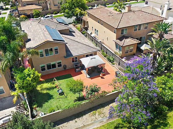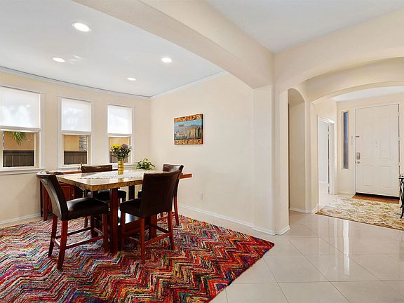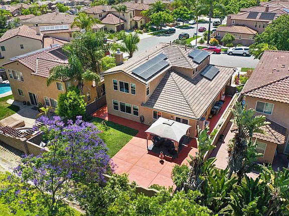 Elevate your lifestyle in this gorgeous Winding Walk home! As you enter you will gaze upon high ceilings adorned with crown molding and tons of windows creating a light and airy living atmosphere. One bedroom and full bathroom on the main floor will make guests feel welcome. Effortless entertaining will be yours with a formal dining room that seamlessly flows into the family room and kitchen. The leased solar system maximizes energy efficiency and cost savings. The kitchen is a culinary dream with tons of counter space for meal preparation, an abundance of cabinets, including see-through upper cabinets above the eat-at counter, a 5-burner gas cooktop, a center island with space for seating to keep the conversation flowing and a Butler’s pantry. Upstairs you will find three bedrooms that share a hall bathroom, a large laundry room equipped with cabinets and a rinse sink. The spacious primary suite provides plenty of space for your Peloton squad or a workspace with an en suite bathroom featuring a garden tub, step-in shower and walk-in closet. The fun continues in the backyard where you will find a large custom patio - perfect for an outdoor living or dining area, raised planters, grass for play and plenty of shade to lounge in. Come and enjoy amazing community amenities in the Winding Walk community. Choose from several sparkling pools, a children’s pool, spa, parks, a fully equipped fitness center, basketball courts, biking trails, a covered dining area with outdoor fireplace, playgrounds and serene, manicured greenbelts throughout the community - you will never get bored! Ideally located close to Otay Ranch Town Center with tons of shopping, dining and entertainment venues to choose from. Minutes from Hwy 125 to make your commute a breeze. You work hard, you deserve to live your best life!