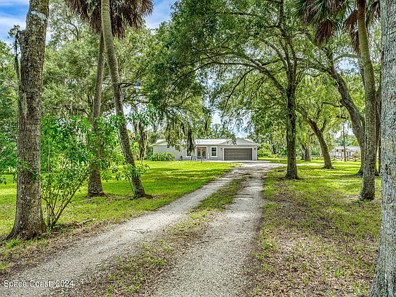 Welcome to 2455 Lake Drive, a remarkable property that combines modern updates with the expansive charm of nearly 3 acres of land in Cocoa, Florida. This meticulously maintained home offers 2,261 square feet of comfortable living space, designed for both relaxation and entertaining. As you approach the property, you're greeted by a well-manicured landscape that sets the tone for what lies ahead. The home itself is a modern gem, featuring recent upgrades that include a newer air conditioning system and water heater. Fresh exterior and interior paint, along with a durable metal roof, enhance its curb appeal and ensure long-term durability. Solar panels on the roof contribute to energy efficiency and reduced utility costs. Step inside to find a welcoming, open-plan living area that seamlessly integrates with the home's outdoor spaces. The interior boasts a contemporary aesthetic, with spacious rooms and high ceilings that create an airy and inviting atmosphere. Large windows allow natural light to flood the space and offer delightful views of the surrounding property. The heart of the home is the updated kitchen, equipped with sleek appliances, stylish cabinetry, and ample countertop space. This space flows effortlessly into the dining area, which is perfect for both casual meals and formal gatherings. The living room provides a comfortable and versatile space for relaxation, complete with modern finishes and a cozy ambiance. The master suite is a true retreat, featuring a generous layout and a private en-suite bathroom. This tranquil space is ideal for unwinding after a long day, and it offers a peaceful escape with its modern fixtures and finishes. Two additional bedrooms provide plenty of space for family or guests, and a second full bath serves these rooms with ease. Outside, the property continues to impress with its extensive amenities. A large shed provides additional storage space, ideal for tools, equipment, or hobbies. For those with recreational vehicles, the covered RV space with full hookups offers convenience and flexibility for travel enthusiasts. The nearly 3-acre lot offers ample room for outdoor activities and personalization. Whether you envision creating a lush garden, a play area, or simply enjoying the open space, this property provides the perfect canvas for your outdoor dreams.
