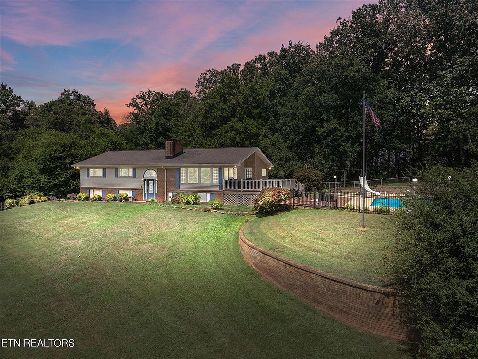 NOW ACCEPTING BACKUP OFFERS!! This one-owner, brick home sits on a private, oversized and gorgeous lot at the back of a quiet neighborhood—perfect for a growing family! Enjoy a beautiful in-ground pool, stunning views, and over two acres of space for recreation and fun. (Make sure to watch the video!) With 3 bedrooms, 3 full bathrooms, and a spacious basement filled with natural light, there's plenty of room to spread out. Vaulted ceilings in the living room add an open and inviting atmosphere, and large windows provide a beautiful view of the property while flooding the space with light. The oversized two-car garage is ideal for hobbies like woodworking or a home gym. While the home is ready for a refresh, it holds a lot of spacious opportunity and is just waiting for someone to make it truly their own. Great for entertaining and located just minutes from top-rated schools, parks, marinas, and shopping—plus easy access to I-75, I-40, and Turkey Creek. A rare opportunity for families who want space, privacy, and possibility!